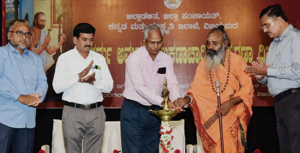 ಜಿಲ್ಲಾಡಳಿತ, ಜಿಲ್ಲಾ ಪಂಚಾಯತ್, ಕನ್ನಡ ಮತ್ತು ಸಂಸ್ಕೃತಿ ಇಲಾಖೆ ವಿಜಯಪುರ ಇವರ ಸಹಯೋಗದಲ್ಲಿ ನಗರದ ಕಂದಗಲ್ ಶ್ರೀ ಹನುಮಂತರಾಯ ರಂಗಮಂದಿರದಲ್ಲಿ ನಡೆದ ವಿಶ್ವಕರ್ಮ ಅಮರಶಿಲ್ಪಿ ಜಕಣಚಾರಿ ಸಂಸ್ಮರಣಾ ದಿನಾಚರಣೆ ಕಾರ್ಯಕ್ರಮವನ್ನು ಜ್ಯೋತಿ ಬೆಳಗಿಸುವ ಮೂಲಕ ಉದ್ಘಾಟಿಸಿ ಮಾತನಾಡಿದರು.