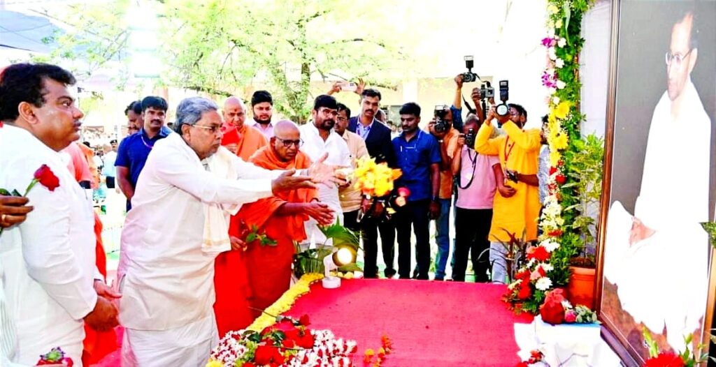 ವಿಜಯಪುರ: ಸಿದ್ದೇಶ್ವರ ಸ್ವಾಮೀಜಿಗಳ ಬದುಕೇ ನಮಗೆ ಆದರ್ಶ. ಅವರ ಜೀವನದ ಆಶಯದಂತೆ ಬದುಕುವುದೇ ಅವರಿಗೆ ಸಲ್ಲಿಸುವ ದೊಡ್ಡ ಗೌರವ ಎಂದು ಮುಖ್ಯಮಂತ್ರಿ ಸಿದ್ದರಾಮಯ್ಯ ಅವರು ಸಿದ್ದೇಶ್ವರ ಸ್ವಾಮೀಜಿಗಳಿಗೆ ಗುರುನಮನ ಸಲ್ಲಿಸಿದರು.