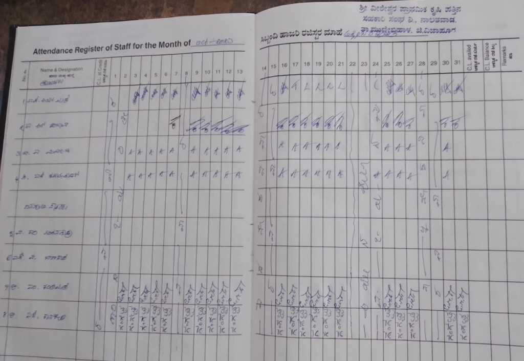 ನಾಲತವಾಡದ ಶ್ರೀ ವೀರೇಶ್ವರ ಕೃಷಿ ಪತ್ತಿನ ಸಹಕಾರಿ ಸಂಘ | ಸಿಬ್ಬಂದಿ ಗೈರು ಸಹಿ ಇಲ್ಲದ ಹಾಜರಿ ಪುಸ್ತಕಗಳು!