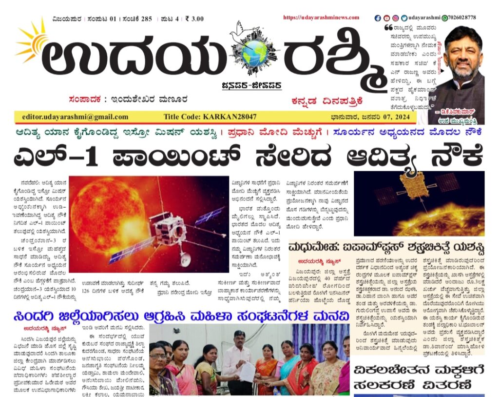 ಉದಯರಶ್ಮಿ ಇಂದಿನ ದಿನಪತ್ರಿಕೆ ಜನವರಿ 07, 2024