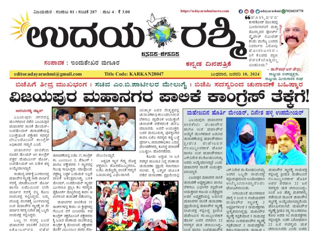 Share Facebook Twitter LinkedIn Email Telegram WhatsApp Udayarashmi kannada daily newspaperUdayarashmi-10-Jan-2024DownloadBIJAPUR NEWS public public news udaya rashmi Udayarashmi today newspaper udayarashminews.com