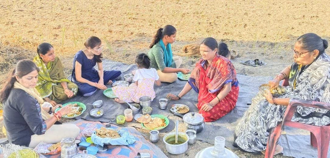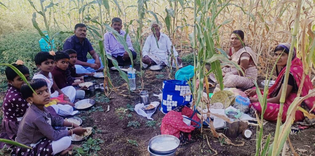 ಮನೆಯಲ್ಲಿ ತಯಾರಿಸಿದ ವಿವಿಧ ಖಾಧ್ಯಗಳ ಊಟ ಸವಿಯಲು ರೈತ ಆತ್ಮಿಯರನ್ನು ಆಹ್ವಾನಿಸಿ ಸಜ್ಜೆ ರೊಟ್ಟಿ, ಮೊಸರು, ಹಿಂಡಿ, ಕೆಂಪು ಚಟ್ನಿ, ಸೆಂಗಾ ಹೊಳಗಿ, ಚಿತ್ರಾನ್ನ, ಬಜಿ, ಕಡುಬು, ಪುಂಡಿ ಪಲ್ಯೆ ವಿವಿಧ ತರಹದ ರುಚಿಕರವಾದ ಊಟವನ್ನು ಪ್ರಕೃತಿ ಮಡಿಲಿನಲ್ಲಿ ಕುಳಿತು ಸವಿದರು.