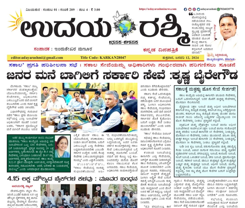 Share Facebook Twitter LinkedIn Email Telegram WhatsApp Udayarashmi kannada daily newspaperUdayarashmi-12-Jan-2024DownloadBIJAPUR NEWS public public news udaya rashmi Udayarashmi today newspaper udayarashminews.com