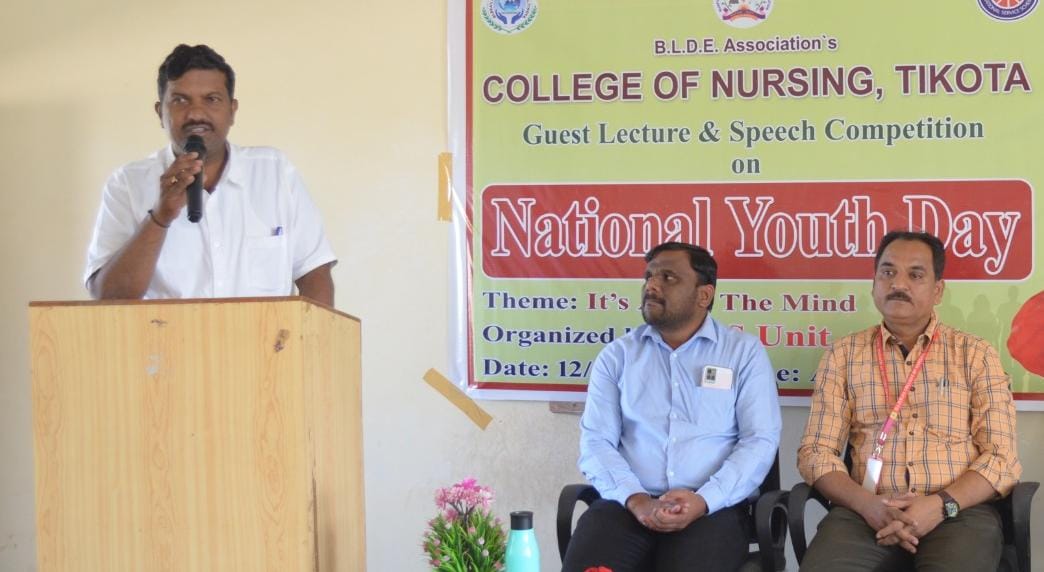 ತಿಕೋಟಾದಲ್ಲಿ ಬಿ.ಎಲ್.ಡಿ.ಇ, ಸಂಸ್ಥೆಯ ಕಾಲೇಜ್ ಆಫ್ ನರ್ಸಿಂಗ್ ಕಾಲೇಜಿನಲ್ಲಿ ಇಂದು ಶುಕ್ರವಾರ ಸ್ವಾಮಿ ವಿವೇಕಾನಂದರ 160ನೇ ಜಯಂತಿ ಅಂಗವಾಗಿ ನಡೆದ ರಾಷ್ಟ್ರೀಯ ಯುವ ದಿನಾಚಾರಣೆಯಲ್ಲಿ ಅವರು ಉಪನ್ಯಾಸ ನೀಡಿದರು.