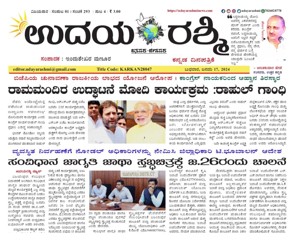 Share Facebook Twitter LinkedIn Email Telegram WhatsApp Udayarashmi kannada daily newspaperUdayarashmi-17-Jan-2024DownloadBIJAPUR NEWS public public news udaya rashmi Udayarashmi today newspaper udayarashminews.com