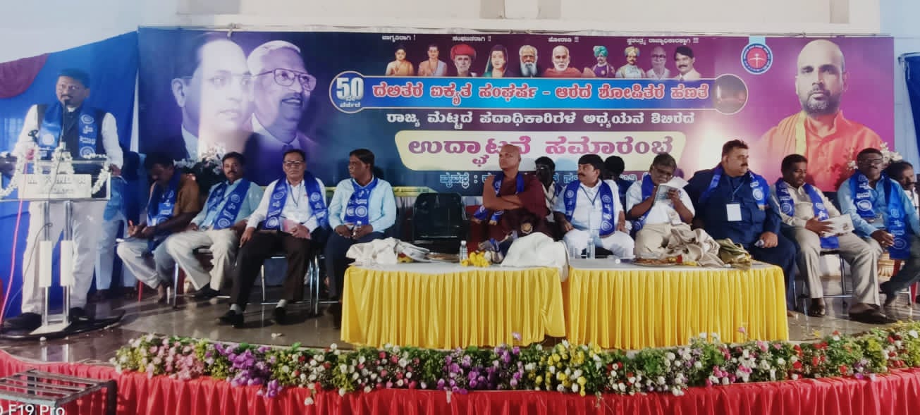ಇಲ್ಲಿಯ ಕರ್ನಾಟಕ ಗಾಂದಿ ಮಂಜಪ್ಪ ಹರ್ಡೇಕರ ಸ್ಮಾರಕದಲ್ಲಿ ಶನಿವಾರ ನಡೆದ ಎರಡು ದಿನದ ಕರ್ನಾಟಕ ದಲಿತ ಸಂಘರ್ಷ ಸಮಿತಿಯ ರಾಜ್ಯ ಮಟ್ಟದ ಪದಾಧಿಕಾರಿಗಳ ಅಧ್ಯಯನ ಶಿಬಿರದ ಉದ್ಘಾಟನಾ ಸಮಾರಂಭದಲ್ಲಿ ಅವರು ಮಾತನಾಡಿದರು.