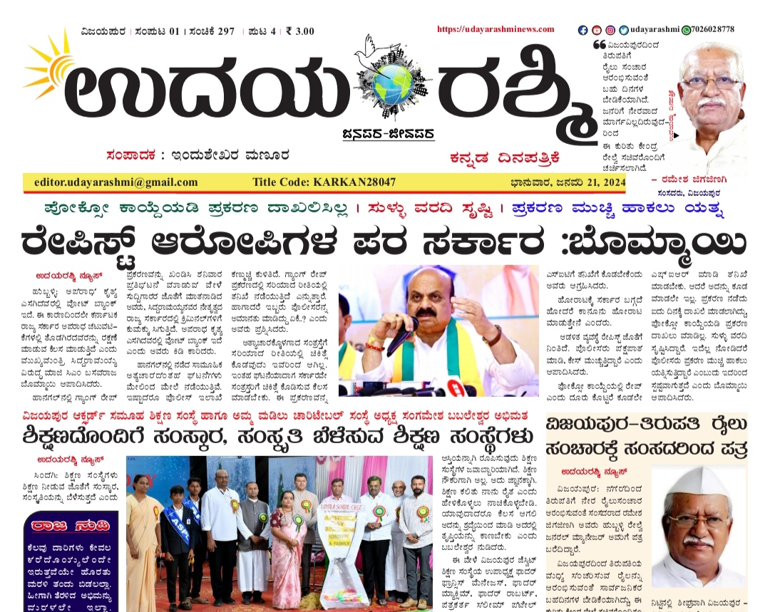 Share Facebook Twitter LinkedIn Email Telegram WhatsApp Udayarashmi kannada daily newspaperUdayarashmi-21-Jan-2024DownloadBIJAPUR NEWS public public news udaya rashmi Udayarashmi today newspaper udayarashminews.com