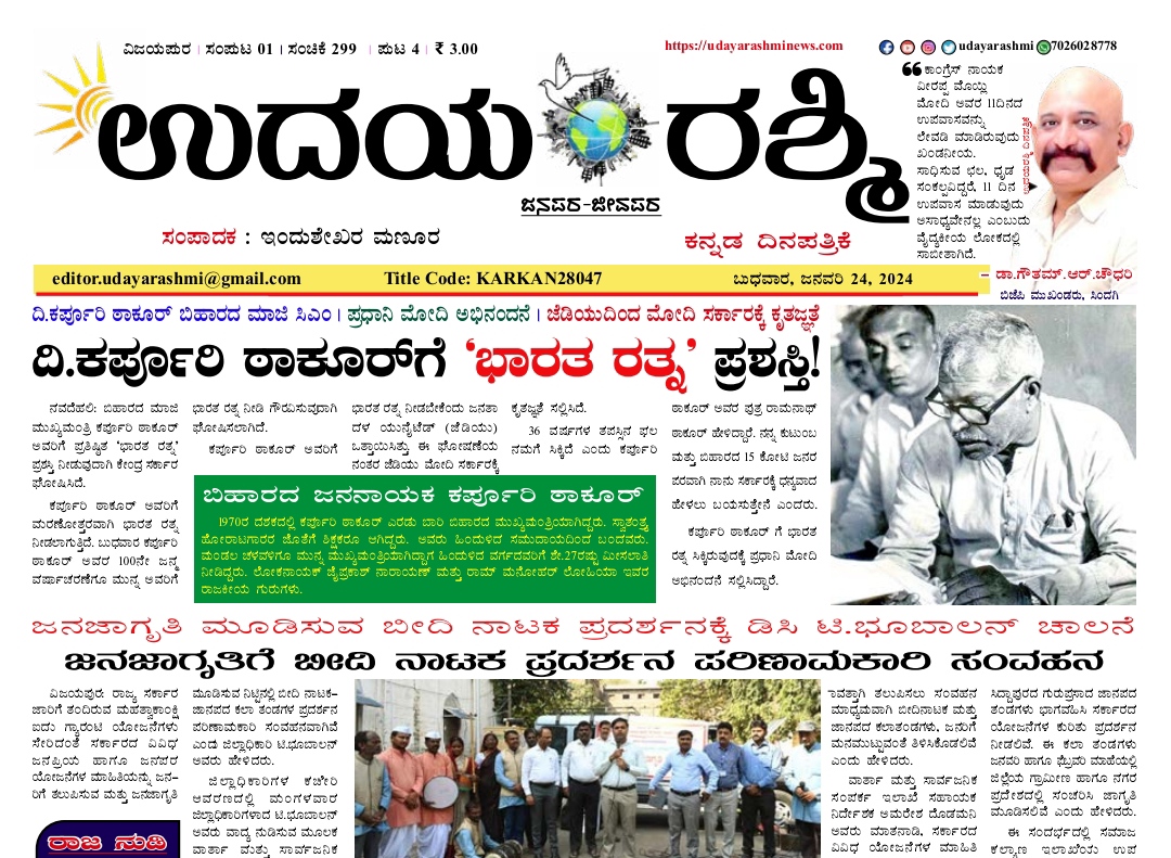 Share Facebook Twitter LinkedIn Email Telegram WhatsApp Udayarashmi kannada daily newspaperUdayarashmi-24-Jan-2024DownloadBIJAPUR NEWS public public news udaya rashmi Udayarashmi today newspaper udayarashminews.com