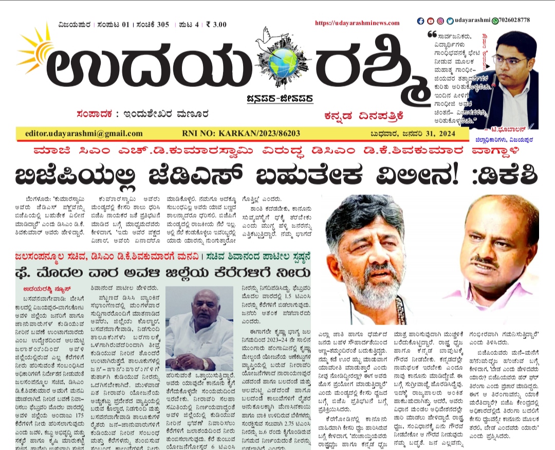 Share Facebook Twitter LinkedIn Email Telegram WhatsApp Udayarashmi kannada daily newspaperUdayarashmi-31-Jan-2024DownloadBIJAPUR NEWS public public news udaya rashmi Udayarashmi today newspaper udayarashminews.com