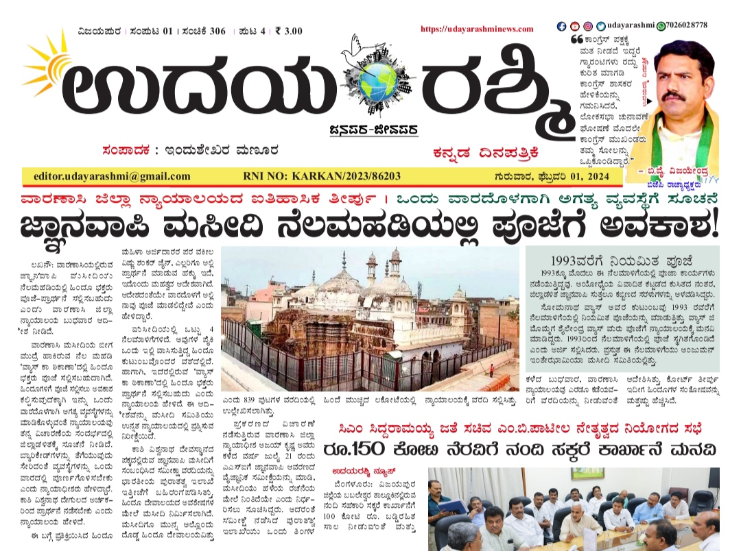 ಉದಯರಶ್ಮಿ ಇಂದಿನ ದಿನಪತ್ರಿಕೆ ಫೆಬ್ರವರಿ 01, 2024