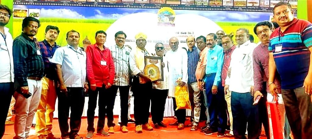ಪ್ರಶಸ್ತಿಗೆ ಪುರಸ್ಕೃತವಾದ ವಿಜಯಪುರ ಜಿಲ್ಲಾ ಕಾರ್ಯನಿರತ ಪತ್ರಕರ್ತರ ಸಂಘದ ಪರವಾಗಿ ಜಿಲ್ಲಾಧ್ಯಕ್ಷ ಸಂಗಮೇಶ ಚೂರಿ ಸಂಘದ ಸದಸ್ಯರ ಹರ್ಷೋದ್ಘಾರಗಳ ಮಧ್ಯೆ ಗಣ್ಯರಿಂದ ಪ್ರಶಸ್ತಿ ಸ್ವೀಕರಿಸಿದರು.