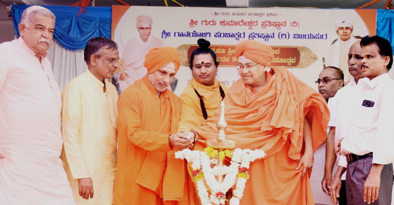 ನಗರದ ಗಾನಬನದಲ್ಲಿ ಕುಮಾರ ಶಿವಯೋಗಿಗಳ ೯೪ನೇ ಪುಣ್ಯ ಸ್ಮರಣೋತ್ಸವ ಹಾಗೂ ಪಂಡಿತ ಪಂಚಾಕ್ಷರ ಗವಾಯಿಗಳ ೧೩೨ನೇ ಜಯಂತ್ಯೋತ್ಸವ ಕಾರ್ಯಕ್ರಮದ ಧರ್ಮಸಭೆಯ ಸಾನ್ನಿಧ್ಯ ವಹಿಸಿ ಮಾತನಾಡಿದ ಅವರು, ಗುರು ಕಾರುಣ್ಯ ಸತತ ಅಭ್ಯಾಸ ಹಾಗೂ ಶ್ರದ್ಧೆ ಇದ್ದರೆ ಸಂಗೀತ ಸಾಧನೆ ಆಗುತ್ತದೆ. ಲತಾ ಮಂಗೇಶ್ಕರ ಅವರಿಗೆ ಬಾಲ್ಯದಲ್ಲಿ ಪಂಚಾಕ್ಷರಿ ಗವಾಯಿಗಳು ಆಶೀರ್ವದಿಸಿದ್ದನ್ನು ಸ್ಮರಿಸಬಹುದು. ಅಂಧರ ಅನಾಥರ ಸೇವೆಗೈಯುತ್ತಿರುವ ಉಭಯ ಪ್ರತಿಷ್ಠಾನಗಳ ಕಾರ್ಯವನ್ನು ಸರ್ಕಾರ ಗುರುತಿಸಲಿ ಎಂದರು.