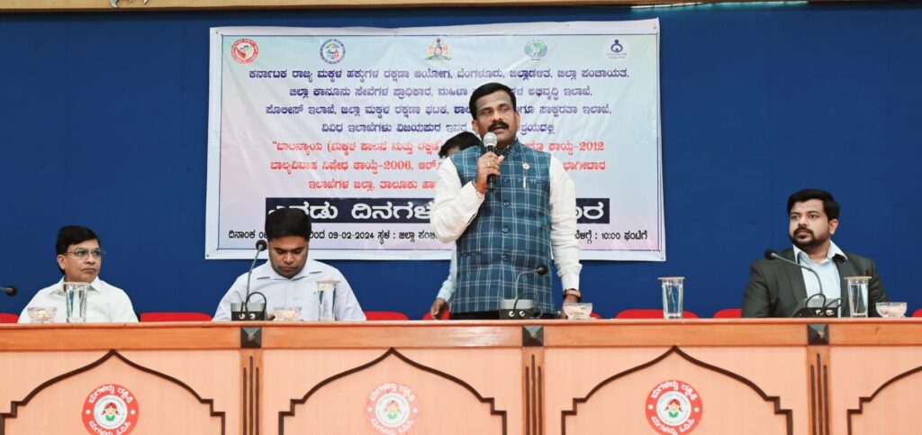 ಜಿಲ್ಲಾ ಪಂಚಾಯತ್ ಸಭಾಂಗಣದಲ್ಲಿ ಕರ್ನಾಟಕ ರಾಜ್ಯ ಮಕ್ಕಳ ಹಕ್ಕುಗಳ ರಕ್ಷಣಾ ಆಯೋಗ ಬೆಂಗಳೂರು, ಜಿಲ್ಲಾಡಳಿತ, ಜಿಲ್ಲಾ ಪಂಚಾಯತ್, ಜಿಲ್ಲಾ ಕಾನೂನು ಸೇವೆಗಳ ಪ್ರಾಧಿಕಾರ, ಮಹಿಳಾ ಮತ್ತು ಮಕ್ಕಳ ಅಭಿವೃದ್ಧಿ ಇಲಾಖೆ, ಪೊಲೀಸ್ ಇಲಾಖೆ, ಜಿಲ್ಲಾ ಮಕ್ಕಳ ರಕ್ಷಣಾ ಘಟಕ, ಶಾಲಾ ಶಿಕ್ಷಣ ಹಾಗೂ ಸಾಕ್ಷರತಾ ಇಲಾಖೆ ಹಾಗೂ ವಿವಿಧ ಇಲಾಖೆಗಳ ಆಶ್ರಯದಲ್ಲಿ ಬಾಲನ್ಯಾಯ (ಮಕ್ಕಳ ಪಾಲನೆ ಮತ್ತು ರಕ್ಷಣೆ) ಕಾಯ್ದೆ-೨೦೧೫ ಪೋಕ್ಸೋ ಕಾಯ್ದೆ-೨೦೧೨ ಬಾಲ್ಯವಿವಾಹ ನಿಷೇಧ ಕಾಯ್ದೆ-೨೦೦೬, ಆರ್.ಟಿ.ಇ ಕಾಯ್ದೆ-೨೦೦೯ರ ಕುರಿತು ಭಾಗೀದಾರ ಇಲಾಖೆಗಳ ಜಿಲ್ಲಾ, ತಾಲ್ಲೂಕು ಮತ್ತು ಗ್ರಾಮ ಮಟ್ಟದ ಅಧಿಕಾರಿಗಳಿಗೆ ಹಮ್ಮಿಕೊಂಡ ಎರಡು ದಿನಗಳ ಕಾರ್ಯಾಗಾರಕ್ಕೆ ಚಾಲನೆ ನೀಡಿ ಅವರು ಮಾತನಾಡಿದರು.