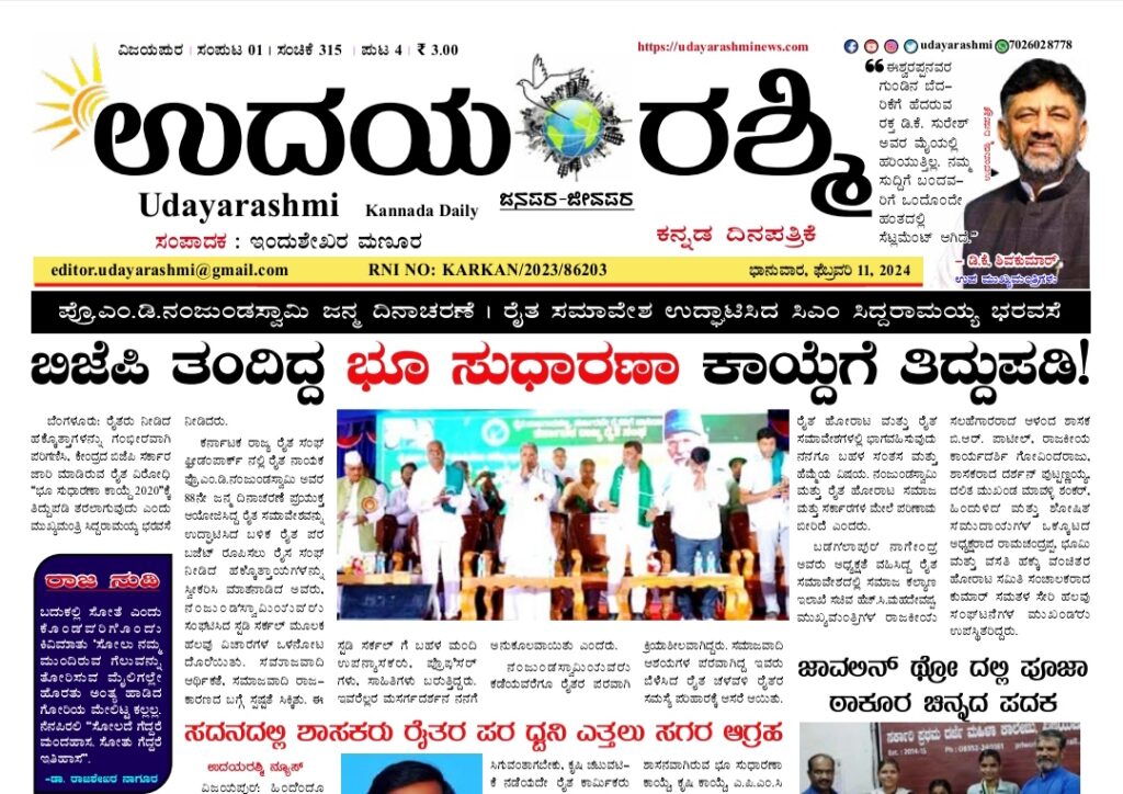 Share Facebook Twitter LinkedIn Email Telegram WhatsApp Udayarashmi kannada daily newspaperUdayarashmi-11-Feb-2024DownloadBIJAPUR NEWS public public news udaya rashmi Udayarashmi today newspaper udayarashminews.com