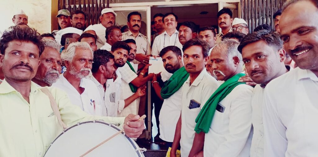 ಮುಖ್ಯ ಎಂಜಿನಿಯರ್ ಕಚೇರಿ ಎದುರು ಪ್ರತಿಭಟಿಸಿದ ರೈತ ಸಂಘದ ಕಾರ್ಯಕರ್ತರು ಕೆಬಿಜೆಎನ್ ಎಲ್ ಅಧಿಕಾರಿಗಳ ವಿರುದ್ಧ ಘೋಷಣೆ ಕೂಗಿದರು.