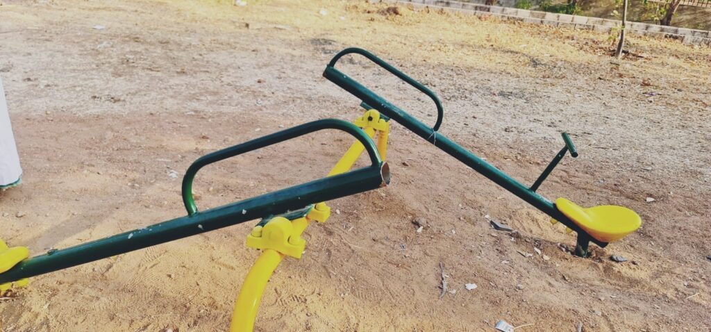 ಮುದ್ದೇಬಿಹಾಳ: ಮುರಿದು ಹೋದ ಜಾರುಬಂಡೆಯ ಮುಖ್ಯ ಪ್ಲಾಸ್ಟಿಕ್, ಕಬ್ಬಿಣದ ಸಳಿಗಳು ಕಿತ್ತಿದ ಜೋಕಾಲಿಗೆ ಅವೈಜ್ಞಾನಿಕ ವೈರ್ ಬಿಗಿತ, ಬಿಚ್ಚಿಬಿದ್ದಿರುವ ನಟ್ಟನ್ನು ಫಿಟ್ ಮಾಡೋರಿಲ್ಲ, ಮತ್ತೊಂದು ಜೋಕಾಲಿಗೆ ಕಟ್ಟಿಗೆಯ ತುಂಡನ್ನು ಬಳಸಿ ಆಟಕ್ಕೆ ನಿಲ್ಲೋ ಮಕ್ಕಳು, ಒಂದು ಕಡೆ ಕೂರುವ ಸೀಟೆ ಇಲ್ಲದ ಮತ್ತೊಂದು ಆಟದ ಸಲಕರಣೆ, ದಿನನಿತ್ಯ ನೂರಾರು ಮಕ್ಕಳು ಆಟವಾಡಿ ಸುಸ್ತಾಗಿ ಆನಂದ ಪಡೋದು ಇದೇ ಉದ್ಯಾನವನದಲ್ಲಿ.