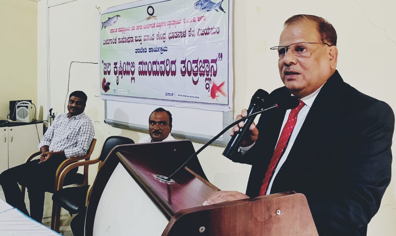 ನಗರದ ಹೊರ ವಲಯದಲ್ಲಿರುವ ಮೀನುಗಾರಿಕೆ ಸಂಶೋಧನಾ ಮತ್ತು ಮಾಹಿತಿ ಕೇಂದ್ರ, ಭೂತನಾಳದಲ್ಲಿ ಜರುಗಿದ “ಜಲಕೃಷಿಯಲ್ಲಿ ಮುಂದುವರೆದ ತಂತ್ರಜ್ಞಾನ”ಎಂಬ ವಿಷಯದ ಮೇಲೆ ಎರಡು ದಿನದ ತರಬೇತಿ ಕಾರ್ಯಕ್ರಮದ ಸಮಾರೋಪ ಸಮಾರಂಭದಲ್ಲಿ ಭಾಗವಹಿಸಿ ಅವರು ಮಾತನಾಡಿದರು.