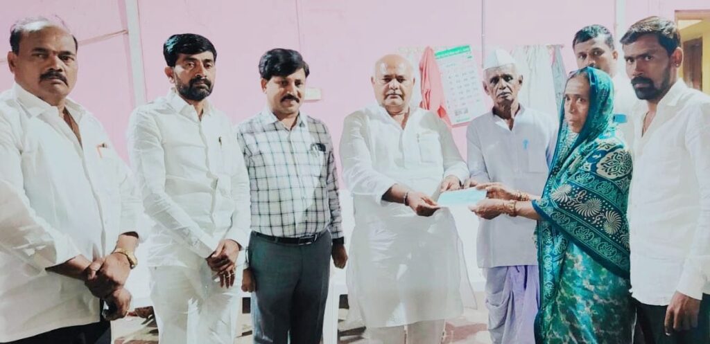 ಬಸವನಬಾಗೇವಾಡಿ: ಪಟ್ಟಣದಲ್ಲಿ ವಿದ್ಯುತ್ ಸ್ಪರ್ಶದಿಂದ ಮೃತರಾಗಿದ್ದ ಶ್ರೀಶೈಲ ಗುರಪ್ಪ ಹಾರಿವಾಳ ಅವರ ಕುಟುಂಬ ಪರಿವಾರದವರಿಗೆ ಹೆಸ್ಕಾಂ ಇಲಾಖೆಯ ರೂ.5 ಲಕ್ಷ ಪರಿಹಾರ ಧನದ ಚೆಕ್ ಅನ್ನು ಸಚಿವ ಶಿವಾನಂದ ಪಾಟೀಲ ಅವರು ಗುರುವಾರ ಸಂಜೆ ಅವರ ಮನೆಗೆ ತೆರಳಿ ವಿತರಿಸಿದರು.