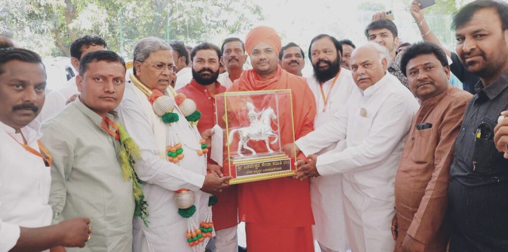 ಬಸವನಬಾಗೇವಾಡಿ: ಬಸವ ಜನ್ಮ ಬಸವನಬಾಗೇವಾಡಿಯ ಅಭಿವೃದ್ಧಿಗೆ ಸಿಎಂ ಸಿದ್ದರಾಮಯ್ಯನವರು ಬಜೆಟ್ ನಲ್ಲಿ ಬಸವನಬಾಗೇವಾಡಿಗೆ ಪ್ರತ್ಯೇಕ ಪ್ರಾಧಿಕಾರ ಘೋಷಣೆ ಮಾಡಿದ ಹಿನ್ನೆಲೆಯಲ್ಲಿ ಸ್ಥಳೀಯ ಬಸವೇಶ್ವರ ಸೇವಾ ಸಮಿತಿ ಪದಾಧಿಕಾರಿಗಳು ಸೋಮವಾರ ಬೆಂಗಳೂರಿನ ಮುಖ್ಯಮಂತ್ರಿಗಳ ಕಾವೇರಿ ನಿವಾಸದಲ್ಲಿ ಜವಳಿ ಕಬ್ಬು ಅಭಿವೃದ್ದಿ ಸಕ್ಕರೆ ಹಾಗೂ ಕೃಷಿ ಮಾರುಕಟ್ಟೆ ಸಚಿವ ಶಿವಾನಂದ ಪಾಟೀಲ ಅವರ ನೇತೃತ್ವದಲ್ಲಿ ಮುಖ್ಯಮಂತ್ರಿ ಸಿದ್ದರಾಮಯ್ಯ ಅವರಿಗೆ ವಿಶ್ವಗುರು ಬಸವಣ್ಣನವರ ಬೆಳ್ಳಿ ಮೂರ್ತಿಯನ್ನು ಕೊಡುವ ಮೂಲಕ ಸನ್ಮಾನಿಸಿ ಅಭಿನಂದಿಸಲಾಯಿತು.