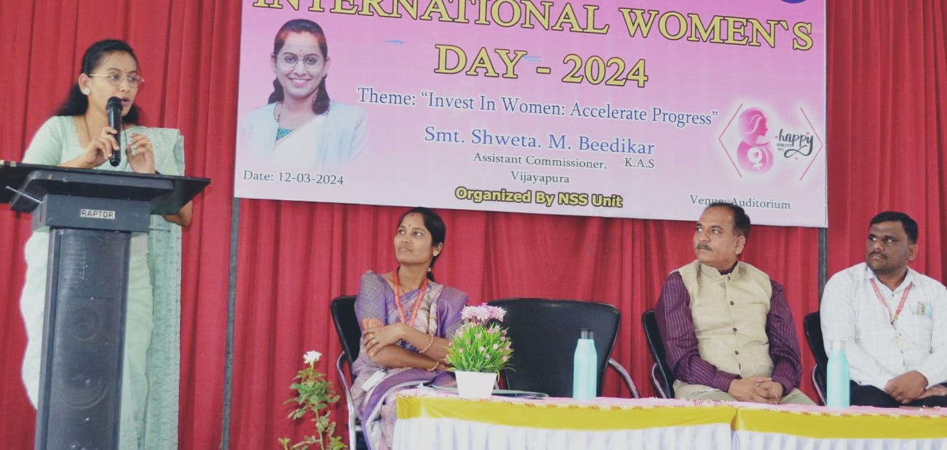 ಸಹಾಯಕ ಪ್ರಾಧ್ಯಾಪಕಿ ಬಸಲಿಂಗಮ್ಮ ಹಯ್ಯಾಳ ವಿಶ್ವ ಮಹಿಳಾ ದಿನಾಚರಣೆಯ ವಿಷಯದ ಕುರಿತು ವಿವರಿಸಿದರು,