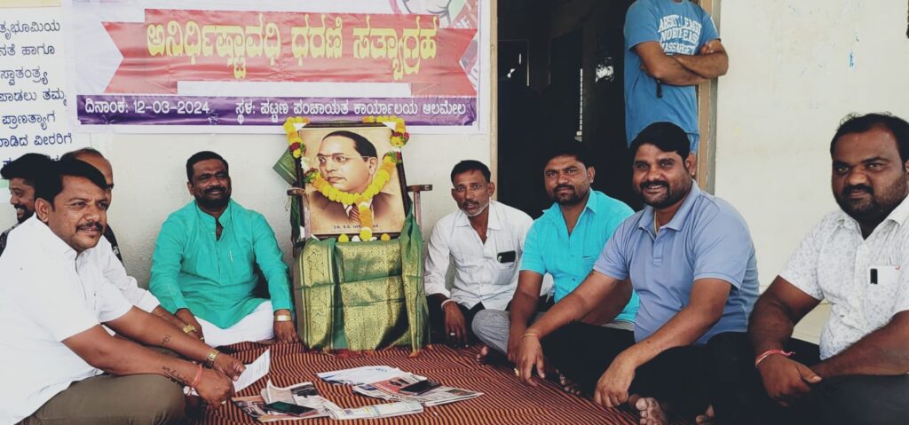 ಆಲಮೇಲ: ಪಟ್ಟಣದಲ್ಲಿನ ಮನೆಗಳ ಹಂಚಿಕೆಯಲ್ಲಿ ಅಕ್ರಮ ಹಾಗೂ ವಿವಿಧ ಬೇಡಿಕೆ ಈಡೇರಿಸುವಂತೆ ಆಗ್ರಹಿಸಿ ದಲಿತ ಸಂಘರ್ಷ ಸಮಿತಿಯ (ಅಂಬೇಡ್ಕರವಾದ) ಪಧಾದಿಕಾರಿಗಳು ಮಂಗಳವಾರ ಪಟ್ಟಣ ಪಂಚಾಯತಿ ಎದುರು ಅನಿರ್ಧಿಷ್ಠಾವಧಿ ಧರಣಿ ಸತ್ಯಾಗ್ರಹ ಹಮ್ಮಿಕೊಂಡು ಬುಧವಾರ ಎರಡು ದಿನ ಪೂರ್ಣಗೊಂಡರೂ ಇಲ್ಲಿವರೆಗೂ ಯಾವುದೆ ಅಧಿಕಾರಿಗಳು ಸಮಸ್ಯೆ ಆಲಿಸಲು ಬಾರದ್ದರಿಂದ ಸಂಬಂಧಪಟ್ಟ ಅಧಿಕಾರಿಗಳ ವಿರುದ್ಧ ಘೋಷಣೆ ಕೂಗಿ ಆಕ್ರೋಶ ವ್ಯಕ್ತಪಡಿಸಿದರು.