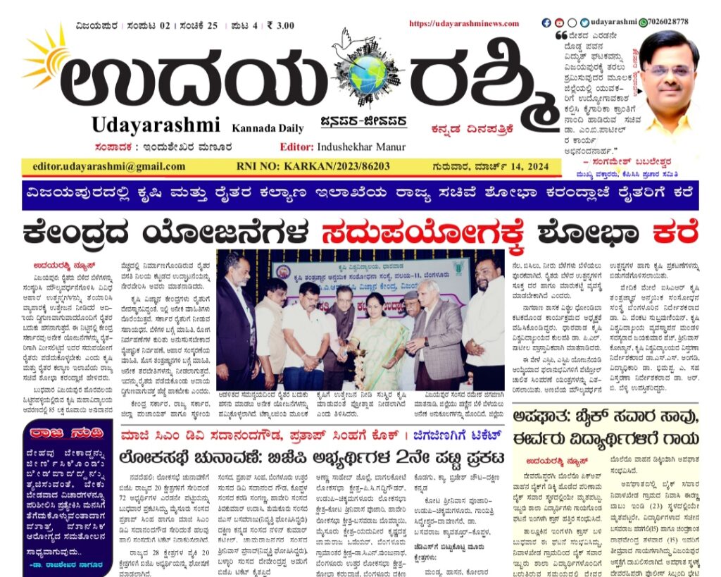 Share Facebook Twitter LinkedIn Email Telegram WhatsApp Udayarashmi kannada daily newspaperUdayarashmi-14-MARCH-2024DownloadBIJAPUR NEWS public public news udaya rashmi Udayarashmi today newspaper udayarashminews.com