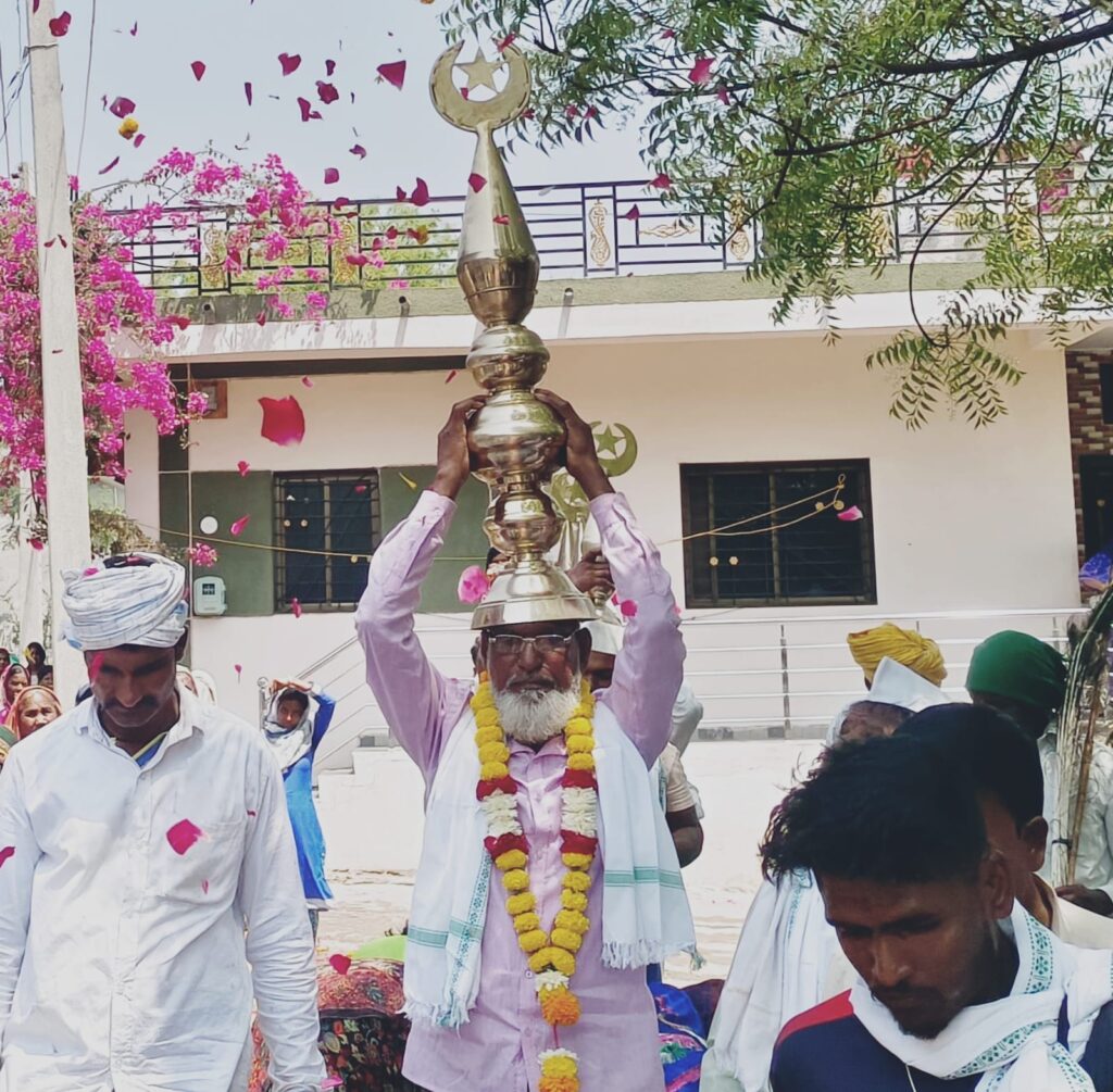 ಗ್ರಾಮದ ಮಾ.15 ರಂದು ಪ್ರಮುಖ ಬೀದಿಗಳಲ್ಲಿ ಮೆರವಣಿಗೆ ಹೂಗಳು ಸುರಿಮಳೆ ಮಾಡುತ್ತ ಗ್ರಾಮಕ್ಕೆ ಶಿಖರದ ಕಳಸಕ್ಕೆ ಸ್ವಾಗತಿಸುವ ಮೂಲಕ ದೇವಿಯ ಗುಡಿಗೆ ಬಂದು ನಂತರ ಶಿಖರಕ್ಕೆ ಕಳಸಾರೋಹಣ ಮಾಡಲಾಯಿತು.