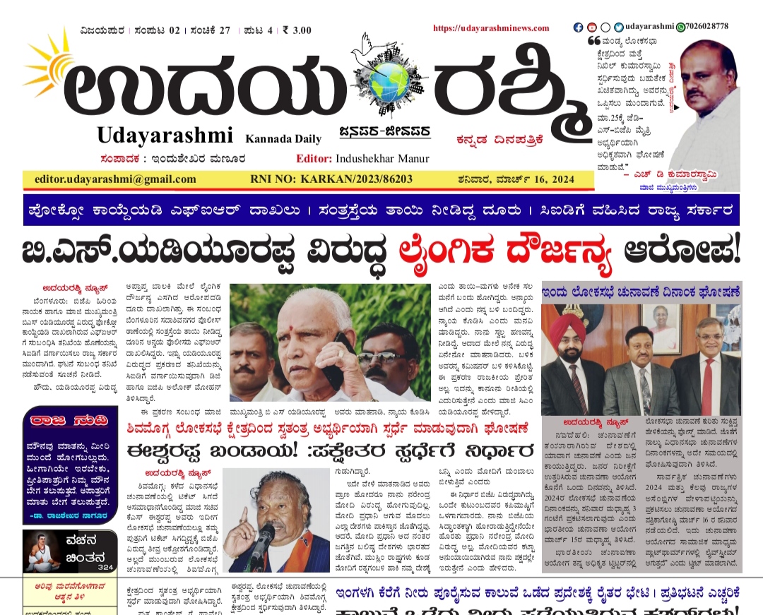 Share Facebook Twitter LinkedIn Email Telegram WhatsApp Udayarashmi kannada daily newspaperUdayarashmi-16-MARCH-2024DownloadBIJAPUR NEWS public public news udaya rashmi Udayarashmi today newspaper udayarashminews.com