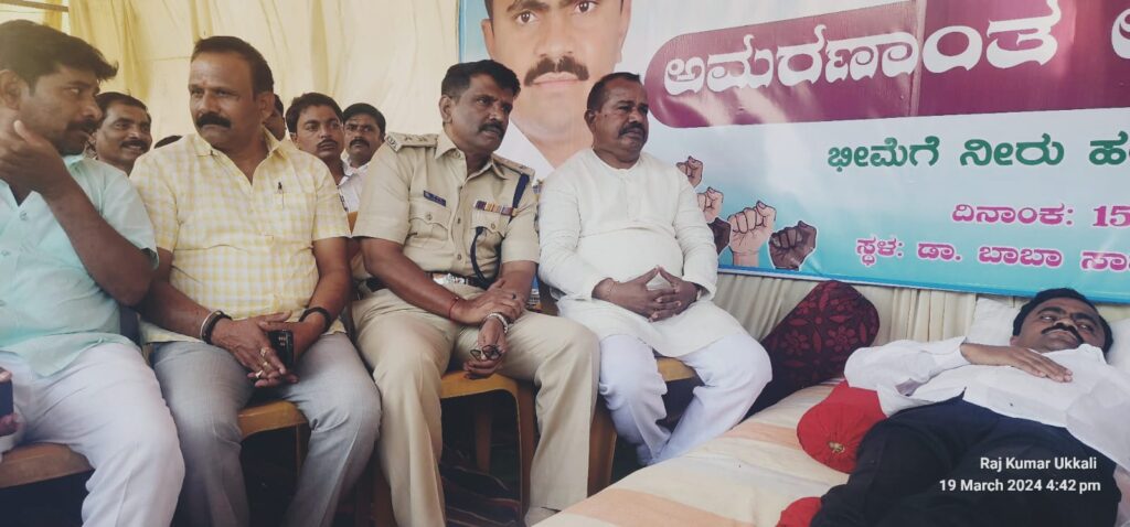 ಅಫಜಲಪುರ: ಭೀಮೆಗೆ ನೀರು ಹರಿಸಿ ರೈತರ ಜೀವ ಉಳಿಸಿ ಎಂದು ಶಿವಕುಮಾರ ನಾಟಿಕಾರ ಅವರು ಅಮರಣಾಂತ ಸತ್ಯಾಗ್ರಹ ಹಮ್ಮಿಕೊಂಡಿದ್ದು ಸತ್ಯಾಗ್ರಹದ ೫ನೇ ದಿನದಂದು ಪಕ್ಕದ ಸಿಂದಗಿ ತಾಲೂಕಿನ ಮಾಜಿ ಶಾಸಕ ರಮೇಶ ಭೂಸನೂರ ಭೇಟಿ ನೀಡಿ ಧರಣಿಗೆ ಬೆಂಬಲಿಸಿದರು.