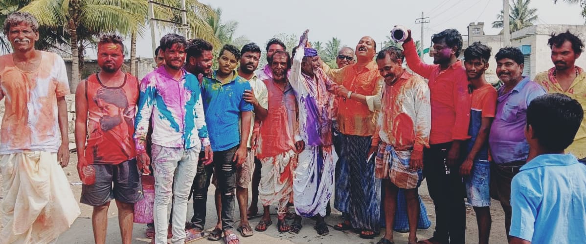 ಸೋಮವಾರ ರಾತ್ರಿವರೆಗೆ ಕಾಮದಹನ ಮಾಡಿದ್ದ ಯುವಕರು ಮಂಗಳವಾರ ಬೆಳಗ್ಗೆಯಿಂದಲೇ ಬಣ್ಣದಾಟದಲ್ಲಿ ತೊಡಗಿದ್ದರು. ಗ್ರಾಮದ ಪ್ರಮುಖ ಬೀದಿಗಳಲ್ಲಿ ಸಂಚರಿಸುತ್ತಿದ್ದವರ ಮೇಲೆ ಸ್ನೇಹಿತರಿಗೆ ಪರಸ್ಪರ ಬಣ್ಣ ಹಚ್ಚಿ ಬೊಬ್ಬೆ ಹಾಕುತ್ತ ಕುಣಿದು ಕುಪ್ಪಳಿಸಿದರು.