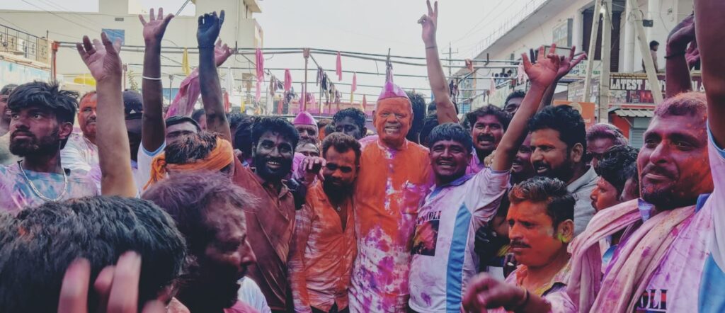 ಯುವ ಸಮೂಹದವರು ಹಮ್ಮಿಕೊಂಡಿದ್ದ ಕಾರ್ಯಕ್ರಮದಲ್ಲಿ ಮಾಜಿ ಸಚಿವ ಎಸ್.ಕೆ.ಬೆಳ್ಳುಬ್ಬಿಯವರು ಭಾಗವಹಿಸಿ ಯುವಕರ ಮಧ್ಯದಲ್ಲಿ ರಂಗಿನಾಟದ ರಂಗನ್ನು ಆಡುವುದರ ಮೂಲಕ ಯುವಕರಲ್ಲಿ ಉತ್ಸಾಹ ತುಂಬಿದರು.