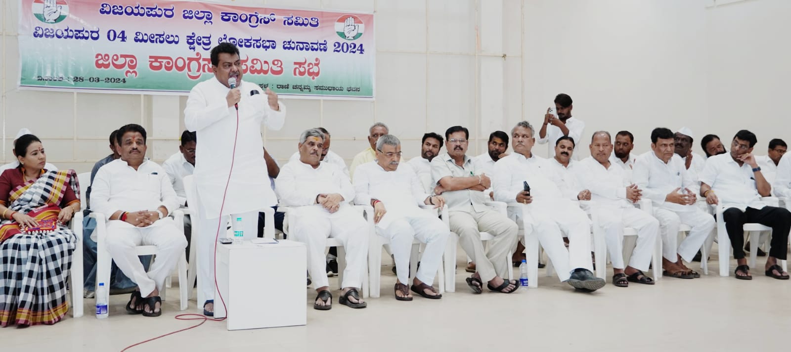 ಲೋಕಸಭೆ ಅಭ್ಯರ್ಥಿ ರಾಜು ಆಲಗೂರ ಪರ ಗುರುವಾರ ನಗರದ ಕಿತ್ತೂರು ಚೆನ್ನಮ್ಮ ಭವನದಲ್ಲಿ ನಡೆದ ಜಿಲ್ಲೆಯ ಪಕ್ಷದ ಮುಖಂಡರು, ಪದಾಧಿಕಾರಿಗಳ ಮಹತ್ವದ ಸಭೆಯಲ್ಲಿ ಅವರು ಮಾತನಾಡಿದರು.