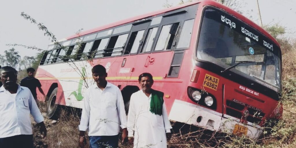 ಕಲಕೇರಿ: ತಾಳಿಕೋಟಿ ತಾಲೂಕಿನ ಕಲಕೇರಿ ಸಮೀಪದ ಬೆಕಿನಾಳ ಗ್ರಾಮದಲ್ಲಿ ಬೆಳಿಗ್ಗೆ ಸುರಪುರ ಸೋಲಾಪುರ ಬಸ್ಸು ಅಪಘಾತದಿಂದ ಪಾರಾದ ಘಟನೆ ಶನಿವಾರ ನಡೆದಿದೆ. ಸುಮಾರು ೪೦ ಪ್ರಯಾಣಿಕರು ಹಾಗೂ ಪರೀಕ್ಷೆಗೆ ಹೋಗುತ್ತೀರುವ ವಿದ್ಯಾರ್ಥಿಗಳನ್ನು ಕೊಂಡೊಯುತ್ತಿರುವ ಬಸ್ಸು ಜೆ.ಜೆ.ಎಂ ಕಾಮಗಾರಿಯ ಪೈಪನ್ನು ರಸ್ತೆಯ ಬದಿಯಲ್ಲಿ ಹಾಕಿ ಅರ್ಧಂಬರ್ಧ ಮುಚ್ಚಿ ಹೋಗಿರುವ ವೇಳೆ ಟಂ ಟಂ ಗೆ ಸ್ಥಳಾವಕಾಶ ಮಾಡಲು ಬಸ್ಸಿನ ಚಾಲಕ ಹೊದಾಗ ಕೊರೆಗೆ ಜಗ್ಗಿ ಬಸ್ಸು ಪಲ್ಟಿ ಆಗುವ ಸಂಭವವಿತ್ತು ಆದರೆ ಚಾಲಕನ ಮುಂಜಾಗೃತೆಯಿಂದ ಬಸ್ಸು ಪಲ್ಟಿಯಾಗದೇ ಕೊರೆಗೆ ಹೋಗಿ ಬಾಗಿ ನಿಂತ ಘಟನೆ ನಡೆದಿದೆ.