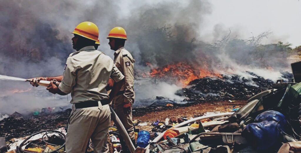 ಅಬ್ದುಲಹಮೀದ ಢವಳಗಿ ಎಂಬುವವರಿಗೆ ಸೇರಿದ ಗುಜರಿ ಸರಕಿಗೆ ಏಕಾಏಕಿ ಬೆಂಕಿ ಹತ್ತಿದ್ದು, ಅಗ್ನಿಶಾಮಕದವರಿಗೆ ಕರೆ ಮಾಡಿ ತಿಳಿಸಿದ್ದಾರೆ. ಸಮಯಕ್ಕೆ ಸರಿಯಾಗಿ ಹಾಜರಾದ ಸಿಬ್ಬಂದಿಗಳಾದ ರಮೆಶ ಚಳ್ಳಣ್ಣವರ, ಸುಭಾಷ್ ರಾಠೋಡ, ಭೀಮರಾವ ನಾಟೆಕಾರ, ಮಸ್ತಾನ್ ಮುಲ್ಲಾಗೋಳ, ಪ್ರಕಾಶ ಸುಬ್ಬಣ್ಣಗೋಳ, ಮಹೇಶ ಕರಡ್ಡಿ, ಸಿದ್ದಣ್ಣ ಪೊಲೇಶಿ ಕಾರ್ಯಾಚರಣೆ ನಡೆಸಿ ಬೆಂಕಿಯನ್ನು ನಂದಿಸುವಲ್ಲಿ ಯಶಸ್ವಿಯಾಗಿದ್ದಾರೆ. ಘಟನಾ ಸ್ಥಳಕ್ಕೆ ಪಿಎಸ್ಐ ಸಂಜೀವ ತಿಪರೆಡ್ಡಿ ಭೇಟಿ ನೀಡಿ ಪರಿಶೀಲಿದ್ದಾರೆ.