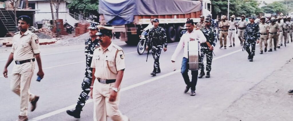 ದೇವರಹಿಪ್ಪರಗಿ: ಲೋಕಸಭೆಯ ಚುನಾವಣೆ ಅಂಗವಾಗಿ ಕೇಂದ್ರ ಮೀಸಲು ಪಡೆಯ ಯೋಧರು ಹಾಗೂ ಸ್ಥಳೀಯ ಪೊಲೀಸ್ ಸಿಬ್ಬಂದಿ ಪಥ ಸಂಚಲನ ಕೈಗೊಂಡು ಸಾರ್ವಜನಿಕರಲ್ಲಿ ಜಾಗೃತಿ ಮೂಡಿಸಿದರು.