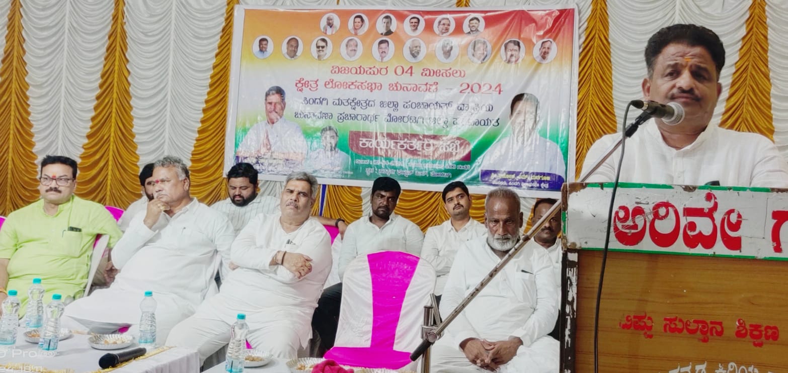 ಲೋಕಸಭಾ ಚುನಾವಣೆ ಪ್ರಯುಕ್ತ ಮಂಗಳವಾರ ಸಾಯಂಕಾಲ ಗ್ರಾಮದ ಕೇರಿಸಿದ್ದೇಶ್ವರ ದೇವಸ್ಥಾನದ ಆವರಣದಲ್ಲಿ ಚುನಾವಣಾ ಪ್ರಚಾರಾರ್ಥವಾಗಿ ಹಮ್ಮಿಕೊಂಡಿದ್ದ ಕಾರ್ಯಕರ್ತರ ಸಭೆಯಲ್ಲಿ ಅವರು ಮಾತನಾಡಿದರು.