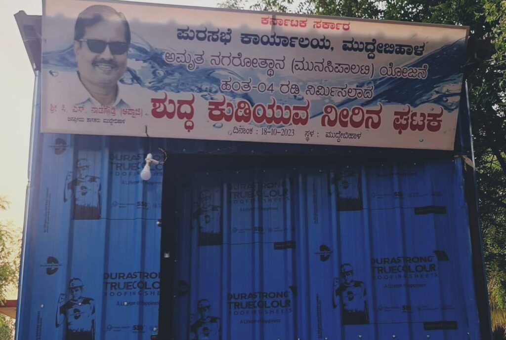 ಪಟ್ಟಣದ ತಹಶೀಲ್ದಾರ ಕಚೇರಿಯ ಬಳಿ ಇರುವ ಸರ್ಕಾರಿ ಪದವಿ ಪೂರ್ವ ಕಾಲೇಜಿನ ಆವರಣದಲ್ಲಿ ಕೆಲವೇ ತಿಂಗಳುಗಳ ಹಿಂದೆಯಷ್ಟೇ ಉದ್ಘಾಟನೆಯಾದ ಶುದ್ಧ ಕುಡಿಯುವ ನೀರಿನ ಘಟಕ ಈ ಸಂದೇಶವನ್ನು ರವಾನಿಸಿದೆ. ಅಮೃತ ನಗರೋತ್ಥಾನ ಯೋಜನೆ ಹಂತ-೪ ರ ಅಡಿ ನಿರ್ಮಿಸಲಾದ ಈ ಶುದ್ಧ ಕುಡಿಯುವ ನೀರಿನ ಘಟಕ ಸಧ್ಯ ಕುಡಿಯೋಕೆ ಯೋಗ್ಯವಿಲ್ಲ (ಅನ್ಫಿಟ್) ಎಂದು ಆರೋಗ್ಯ ಇಲಾಖೆ ವರದಿ ಮಾಡಿದೆ.