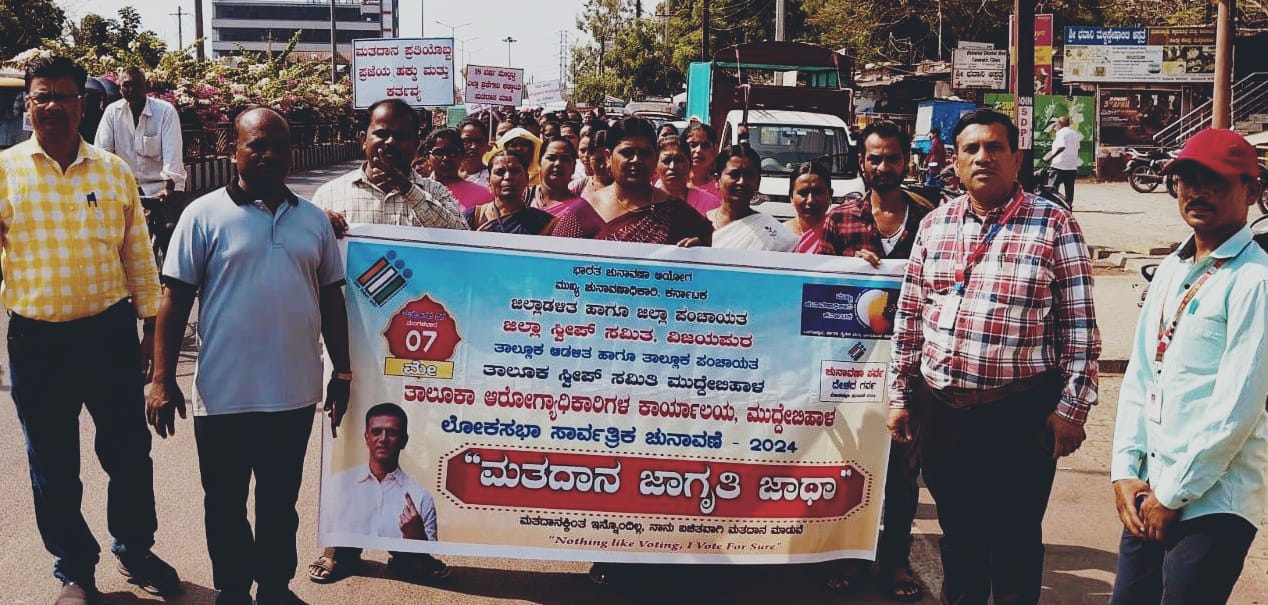 ಮುದ್ದೇಬಿಹಾಳ: ಲೋಕಸಭಾ ಸಾರ್ವತ್ರಿಕ ಚುನಾವಣೆ ಹಿನ್ನೆಲೆ ಆರೋಗ್ಯ ಇಲಾಖೆಯ ವತಿಯಿಂದ ಮತದಾರರಲ್ಲಿ ಮತದಾನ ಜಾಗೃತಿ ಜಾಥಾ ಕಾರ್ಯಕ್ರಮವನ್ನು ಹಮ್ಮಿಕೊಳ್ಳಲಾಯಿತು.
