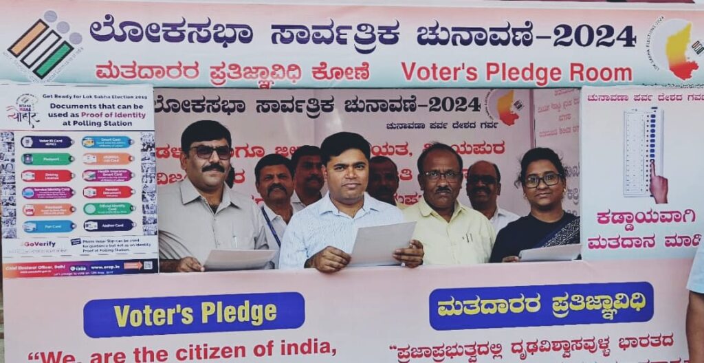 ಲೋಕಸಭಾ ಸಾರ್ವತ್ರಿಕ ಚುನಾವಣೆ ೨೦೨೪ರ ಹಿನ್ನೆಲೆಯಲ್ಲಿ ರವಿವಾರದಂದು ಜಿಲ್ಲಾಡಳಿತ, ಜಿಲ್ಲಾ ಸ್ವೀಪ್ ಸಮಿತಿ ಜಿಲ್ಲಾ ಪಂಚಾಯತ್ ಹಾಗೂ ಮಹಾನಗರ ಪಾಲಿಕೆ ವಿಜಯಪುರ ಇವರ ಸಂಯುಕ್ತ ಆಶ್ರಯದಲ್ಲಿ ವಿಜಯಪುರ ನಗರದ ದರಬಾರ ಸಮೂಹ ಶಿಕ್ಷಣ ಸಂಸ್ಥೆಯ ಆವರಣದಲ್ಲಿ ಮತದಾರರ ಪ್ರತಿಜ್ಞಾವಿಧಿ ಕೋಣೆಯ ಉದ್ಘಾಟನೆ ನೇವೇರಿಸಿ ಅವರು ಮಾತನಾಡಿದರು.
