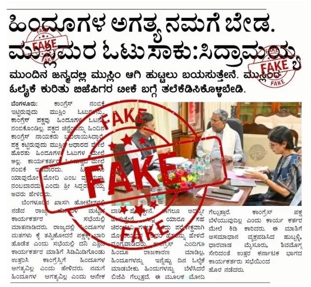 ಈ ಕುರಿತು ಸ್ವತಃ ಸಿದ್ಧರಾಮಯ್ಯ ತಮ್ಮ ಹೇಳಿಕೆ ಬಿಡುಗಡೆ ಮಾಡಿ ಸ್ಪಷ್ಟನೆ ನೀಡಿದ್ದು, ‘ಬಿಜೆಪಿ – ಜೆಡಿಎಸ್ ಮಿತ್ರಮಂಡಳಿ ಕೃಪಾಪೋಷಿತ ಕಿಡಿಗೇಡಿಗಳು ವಾರ್ತಾಪತ್ರಿಕೆಯನ್ನು ಹೋಲುವ ಸುಳ್ಳು ಸುದ್ದಿಯ ತುಣುಕೊಂದನ್ನು ಸೃಷ್ಟಿಸಿ, ಅದರಲ್ಲಿ ಜನರ ಕೋಮುಭಾವನೆ ಕೆರಳಿಸುವ ಸುದ್ದಿಯನ್ನು ತುಂಬಿ ಸಾಮಾಜಜಾಲತಾಣಗಳಲ್ಲಿ ಹರಿಬಿಟ್ಟಿದ್ದಾರೆ. ಈ ಬಗ್ಗೆ ಈಗಾಗಲೇ ನಾನು ಪೊಲೀಸ್ ಇಲಾಖೆಗೆ ದೂರು ನೀಡಿದ್ದೇನೆ. ಇದರ ಹಿಂದಿರುವ ದುಷ್ಟ ಶಕ್ತಿ ಯಾರು ಎಂಬ ಬಗ್ಗೆ ನಮಗೆ ಮಾಹಿತಿ ಇದ್ದು, ಆದಷ್ಟು ಬೇಗನೆ ಅವರನ್ನು ನ್ಯಾಯದ ಕೈಗಳಿಗೆ ಒಪ್ಪಿಸಲಾಗುವುದು’ ಎಂದು ಹೇಳಿದ್ದಾರೆ.