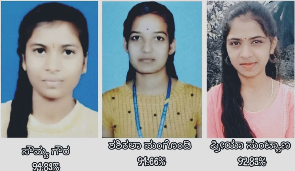 ಕುಮಾರಿ – ಸೌಮ್ಯ ಗೌರ 569/600 ಪ್ರಥಮ ಸ್ಥಾನ, ಕುಮಾರಿ – ಶಶಿಕಲಾ ಮಂಗೊಂಡಿ -568/600 ದ್ವಿತೀಯ ಸ್ಥಾನ, ಕುಮಾರಿ – ಪ್ರೀಯಾ ಸುಂಟ್ಯಾಣ 557/600 ತೃತೀಯ ಸ್ಥಾನ ಪಡೆದಿದ್ದಾರೆ. ಕಾಲೇಜಿನಲ್ಲಿ ಒಟ್ಟು 64 ವಿದ್ಯಾರ್ಥಿಗಳು ಪರೀಕ್ಷೆಗೆ ಹೆಸರು ನೋಂದಾಯಿಸಿದ್ದರು ಅದರಲ್ಲಿ 63 ವಿದ್ಯಾರ್ಥಿಗಳು ತೇರ್ಗಡೆ ಹೊಂದ್ದಿದ್ದಾರೆ. ಅದರಲ್ಲಿ 32 ವಿದ್ಯಾರ್ಥಿಗಳು ಅತ್ಯುತ್ತಮ ಶ್ರೇಣಿಯಲ್ಲಿ (ಡಿಸ್ಟಿಂಕ್ಷನ್), ಮತ್ತು 31 ವಿದ್ಯಾರ್ಥಿಗಳು ಉತ್ತಮ ಶ್ರೇಣಿ (ಪ್ರಥಮ ಶ್ರೇಣಿ)ಯಲ್ಲಿ ಉತ್ತೀರ್ಣರಾಗಿ ಕಾಲೇಜಿಗೆ ಕೀರ್ತಿ ತಂದಿದ್ದಾರೆ. ಈ ಸಾಧನೆ ತೋರಿದ ವಿದ್ಯಾರ್ಥಿಗಳಿಗೆ ಕಾಲೇಜಿನ ಆಡಳಿತ ಮಂಡಳಿಯ ಅಧ್ಯಕ್ಷರಾದ ಶ್ರೀ ಸಿದ್ದನಗೌಡ ಪಾಟೀಲ ಹಾಗೂ ಆಡಳಿತ ಮಂಡಳಿಯ ಸರ್ವ ಸದಸ್ಯರು, ಕಾಲೇಜಿನ ಪ್ರಚಾರ್ಯರಾದ ಶ್ರೀ ಐ.ಡಿ.ಪಡಶೆಟ್ಟಿ ಹಾಗೂ ಉಪನ್ಯಾಸಕ ಸಿಬ್ಬಂದಿ ವರ್ಗ ಹರ್ಷ ವ್ಯಕ್ತಪಡಿಸಿ ವಿದ್ಯಾರ್ಥಿಗಳಿಗೆ ಅಭಿನಂದಿಸಿದ್ದಾರೆ