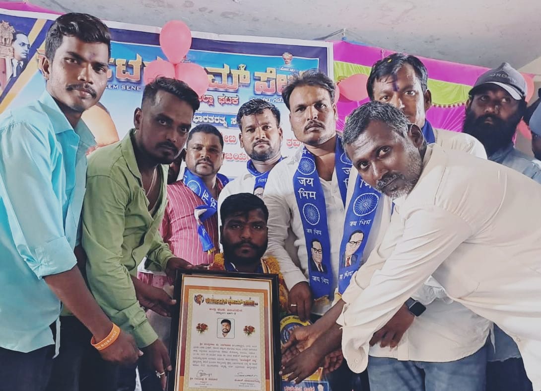ಬಸವನಬಾಗೇವಾಡಿ: ಪಟ್ಟಣದ ಭೀಮ ಆರ್ಮಿ ಭಾರತ ಏಕತಾ ಮಿಷನ್ ಮಾನವ ಹಕ್ಕುಗಳ ಹೋರಾಟ ಸಮಿತಿ ತಾಲೂಕಾಧ್ಯಕ್ಷ ಮುತ್ತುರಾಜ ಬಾಗೇವಾಡಿ ಅವರಿಗೆ ಚಿಮ್ಮಲಗಿ ಗ್ರಾಮದ ಅಂಬೇಡ್ಕರ ಭವನದಲ್ಲಿ ಹಮ್ಮಿಕೊಂಡಿದ್ದ ಡಾ.ಬಾಬಾಸಾಹೇಬ ಅಂಬೇಡ್ಕರ ಜಯಂತಿ ಕಾರ್ಯಕ್ರಮದಲ್ಲಿ ಅಂಬೇಡ್ಕರ ರತ್ನ ಪ್ರಶಸ್ತಿ ಪ್ರದಾನ ಮಾಡಲಾಯಿತು. ಈ ಸಂದರ್ಭದಲ್ಲಿ ಜಿಲ್ಲಾಧ್ಯಕ್ಷ ಗಿರಿಯಪ್ಪ ತಳವಾರ, ಮುಖಂಡರಾದ ಪರಶುರಾಮ ಚಲವಾದಿ, ವಿಜಯಕರ, ಮುದ್ದೇಬಿಹಾಳ ಇತರರು ಇದ್ದರು.
