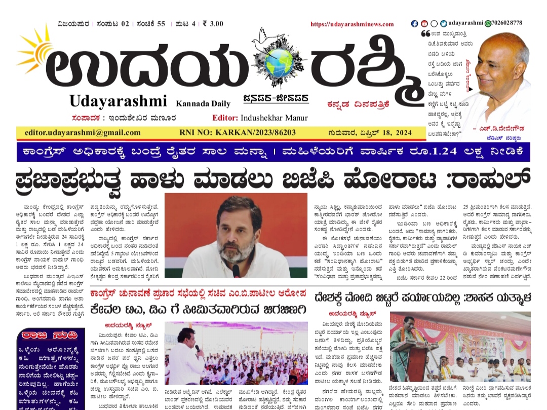 ಉದಯರಶ್ಮಿ ಇಂದಿನ ದಿನಪತ್ರಿಕೆ ಎಪ್ರಿಲ್ 18, 2024