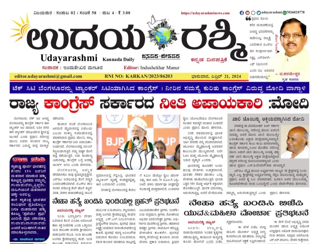 ಉದಯರಶ್ಮಿ ಇಂದಿನ ದಿನಪತ್ರಿಕೆ ಎಪ್ರಿಲ್ 21, 2024