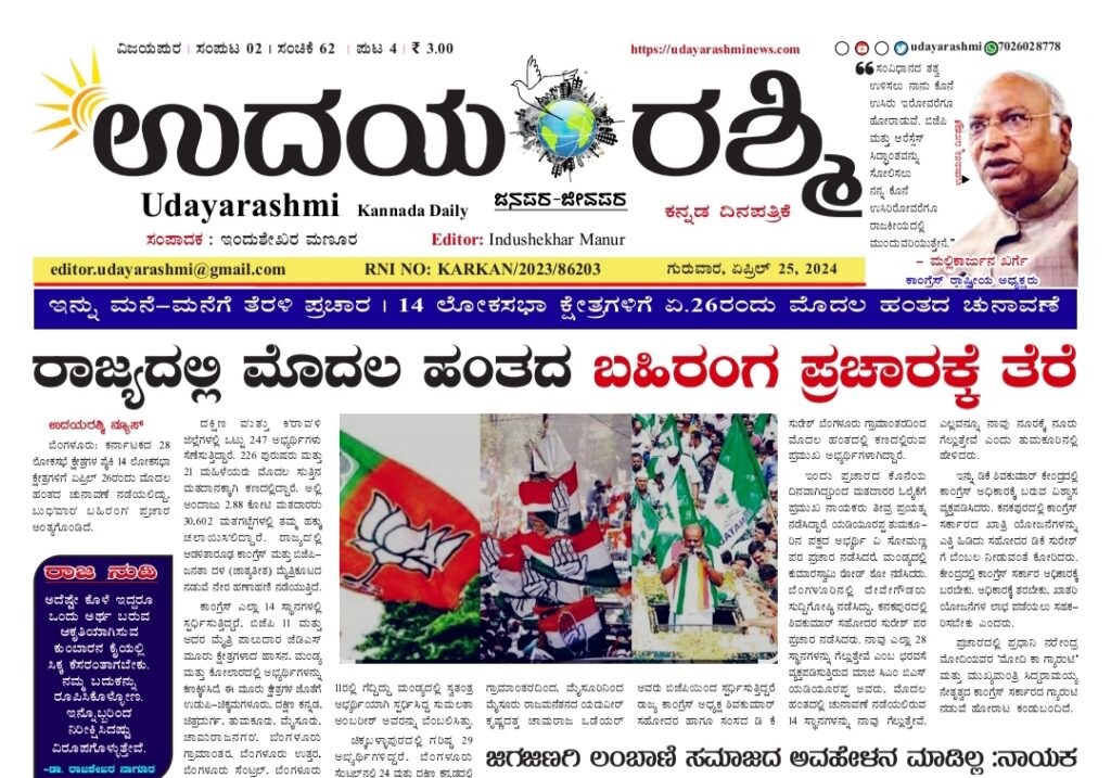 Share Facebook Twitter LinkedIn Email Telegram WhatsApp Udayarashmi kannada daily newspaperUdayarashmi-25-April-2024DownloadBIJAPUR NEWS public public news udaya rashmi Udayarashmi today newspaper udayarashminews.com