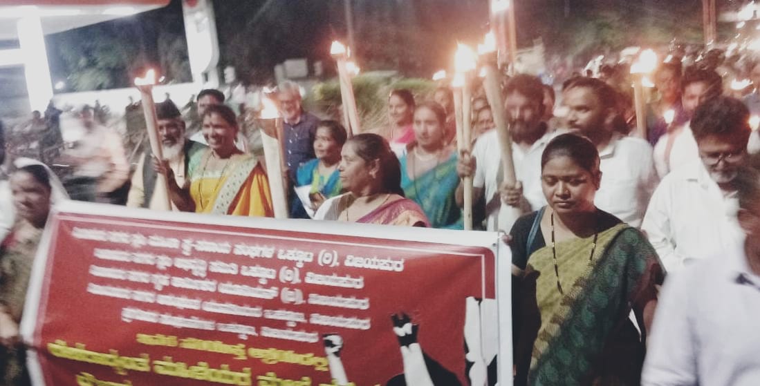 ವಿಜಯಪುರ: ನಗರ ಸ್ಲಂ – ಸ್ವಸಹಾಯ ಸಂಘಗಳ ಒಕ್ಕೂಟ (ರಿ ), ವಿಜಯಪುರ ನಗರ ಸ್ಲಂ ಅಭಿವೃದ್ಧಿ ಸಮಿತಿ ಒಕ್ಕೂಟ (ರಿ ), ವಿಜಯಪುರ ನಗರ ಗೃಹ ಕಾರ್ಮಿಕರ ಯೂನಿಯನ್(ರಿ ), ನಗರ ಅಸಂಘಟಿತ ಯುವತಿಯರ ಒಕ್ಕೂಟ, ಪ್ರಗತಿಪರ ಸಂಘಟನೆಗಳ ಒಕ್ಕೂಟ ಇವರ ಸಹಯೋಗದಲ್ಲಿ ರಾಜ್ಯದಲ್ಲಿ ಇತ್ತೀಚಿನ ದಿನಗಳಲ್ಲಿ ಮಹಿಳೆಯರ ಮೇಲೆ ಅತ್ಯಾಚಾರ ಹಾಗೂ ಕೊಲೆ ಆಗುತ್ತಿರುವುದನ್ನು ಖಂಡಿಸಿ ನಗರದ ಅಂಬೇಡ್ಕರ ವೃತ್ತದಿಂದ ಗಾಂಧಿ ವೃತದವರಿಗೆ ಮಹಿಳೆಯರು ಪಂಜಿನ ಮೆರವಣಿಗೆ ನಡೆಸಿದರು.