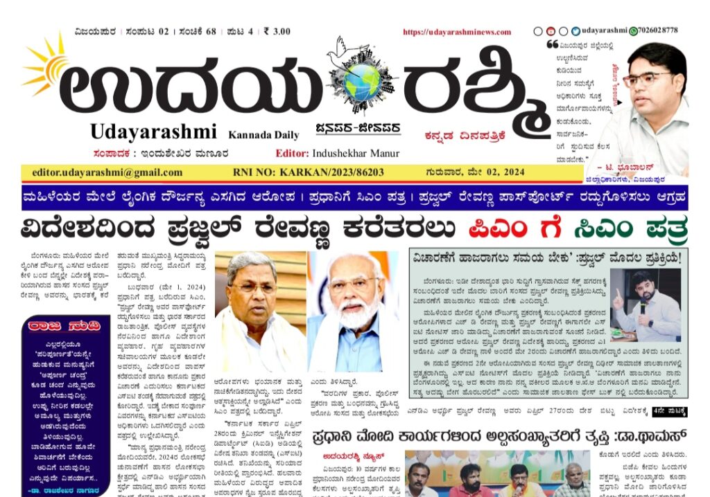 ಉದಯರಶ್ಮಿ ಇಂದಿನ ದಿನಪತ್ರಿಕೆ ಮೇ 02, 2024