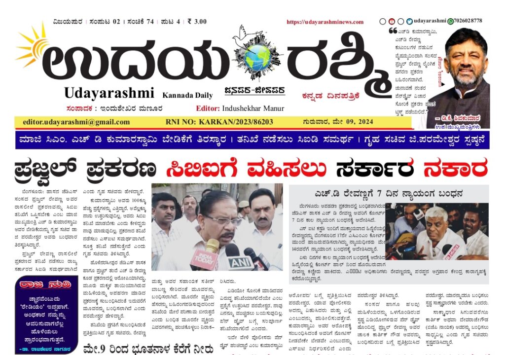 Share Facebook Twitter LinkedIn Email Telegram WhatsApp Udayarashmi kannada daily newspaperUdayarashmi-09-May-2024DownloadBIJAPUR NEWS public public news udaya rashmi Udayarashmi today newspaper udayarashminews.com