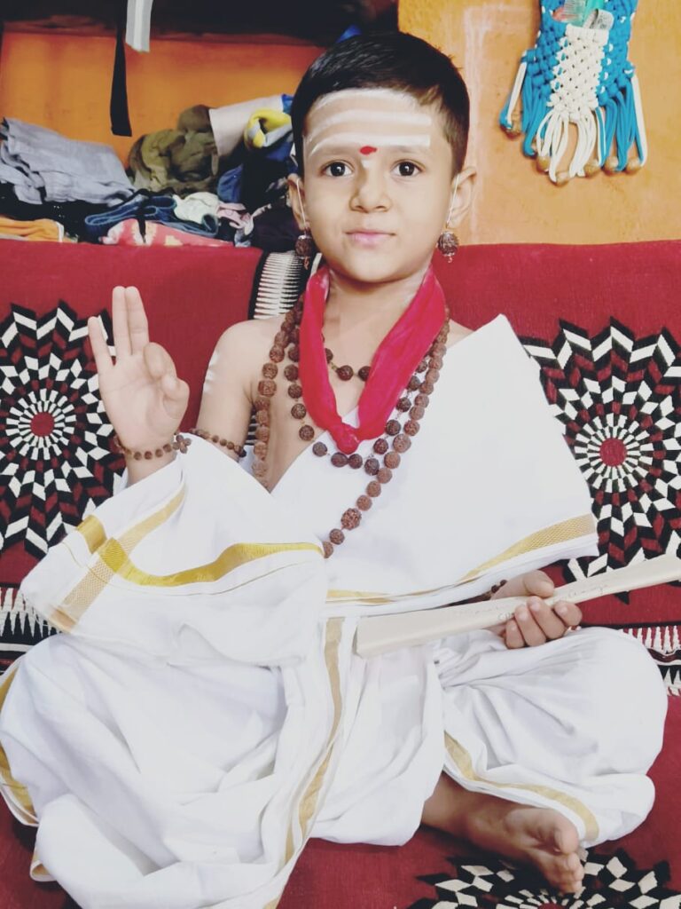 ಸಿಂದಗಿ: ಪಟ್ಟಣದ ಗುರು ಕೃಪಾ ಆಂಗ್ಲ ಮಾಧ್ಯಮ ಶಾಲೆಯ ಮಹಾಂತೇಶ ಶೆಟ್ಟರ ವಿಶ್ವಗುರು ಬಸವಣ್ಣವರ ವೇಷದಲ್ಲಿ ಕಂಗೊಳಿಸುತ್ತಿರುವುದು.