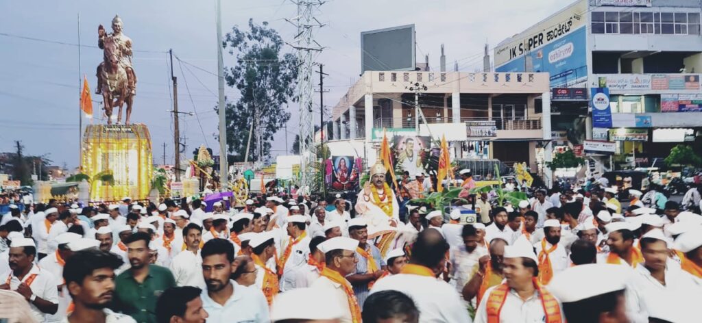 ಸಂಜೆ ಕಿಲ್ಲಾ ಗಲ್ಲಿಯಲ್ಲಿರುವ ಹೊಸಮಠದಿಂದ ಶುರುವಾದ ಮೆರವಣಿಗೆ ಸರಾಫ ಬಜಾರ, ಗ್ರಾಮ ದೇವತೆ ದೇವಸ್ಥಾನ, ಬಸವೇಶ್ವರ ವೃತ್ತ, ಕಿತ್ತೂರು ರಾಣಿ ಚನ್ನಮ್ಮ ವೃತ್ತ, ಸಂಗೊಳ್ಳಿ ರಾಯಣ್ಣ ವೃತ್ತ, ಅಂಬೇಡ್ಕರ್ ವೃತ್ತ, ರಾಘವೇಂದ್ರ ದೇವಸ್ಥಾನ, ಶಾರದಾ ದೇವಿ ದೇವಸ್ಥಾನ, ಬಿಎಸ್ಎನ್ಎಲ್ ಕಚೇರಿ ಮಾರ್ಗವಾಗಿ ಹಳೆಯ ತರಕಾರಿ ಮಾರುಕಟ್ಟೆಯಲ್ಲಿರುವ ಬೊಮ್ಮಲಿಂಗೇಶ್ವರ ದೇವಸ್ಥಾನದವರೆಗೆ ದಾರಿಯುದ್ದಕ್ಕೂ ಬಸವೇಶ್ವರರಿಗೆ ಜಯಘೋಷ ಹಾಕುತ್ತ ಸಾಗಿತು.